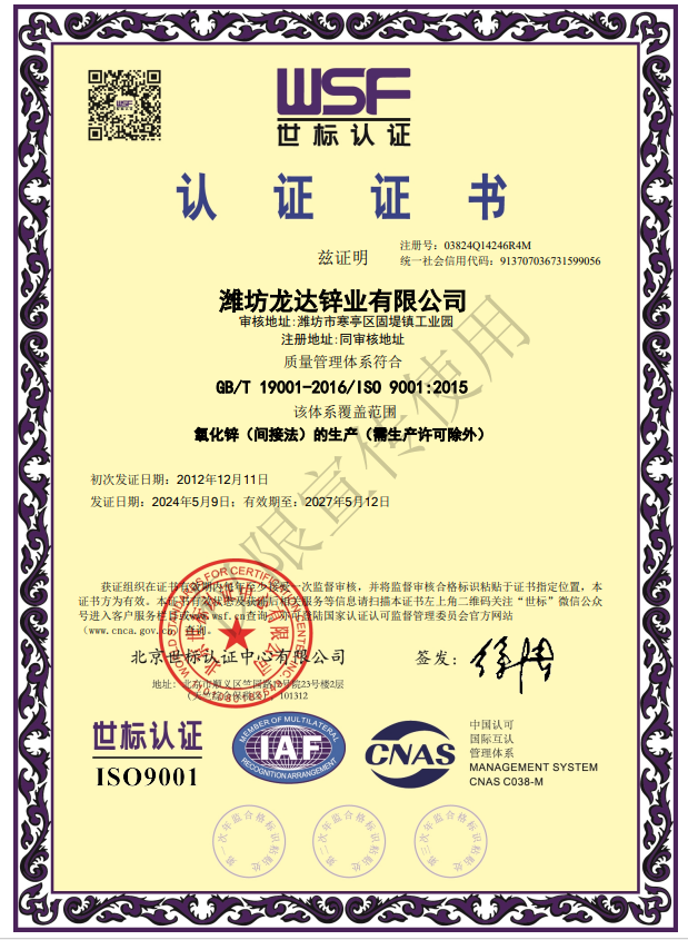 Copyright(C)2017 ,Weifang Longda Zinc Industry Co., Ltd. All Rights Reserved.  Supported by  ChemNet  ChinaChemNet Toocle